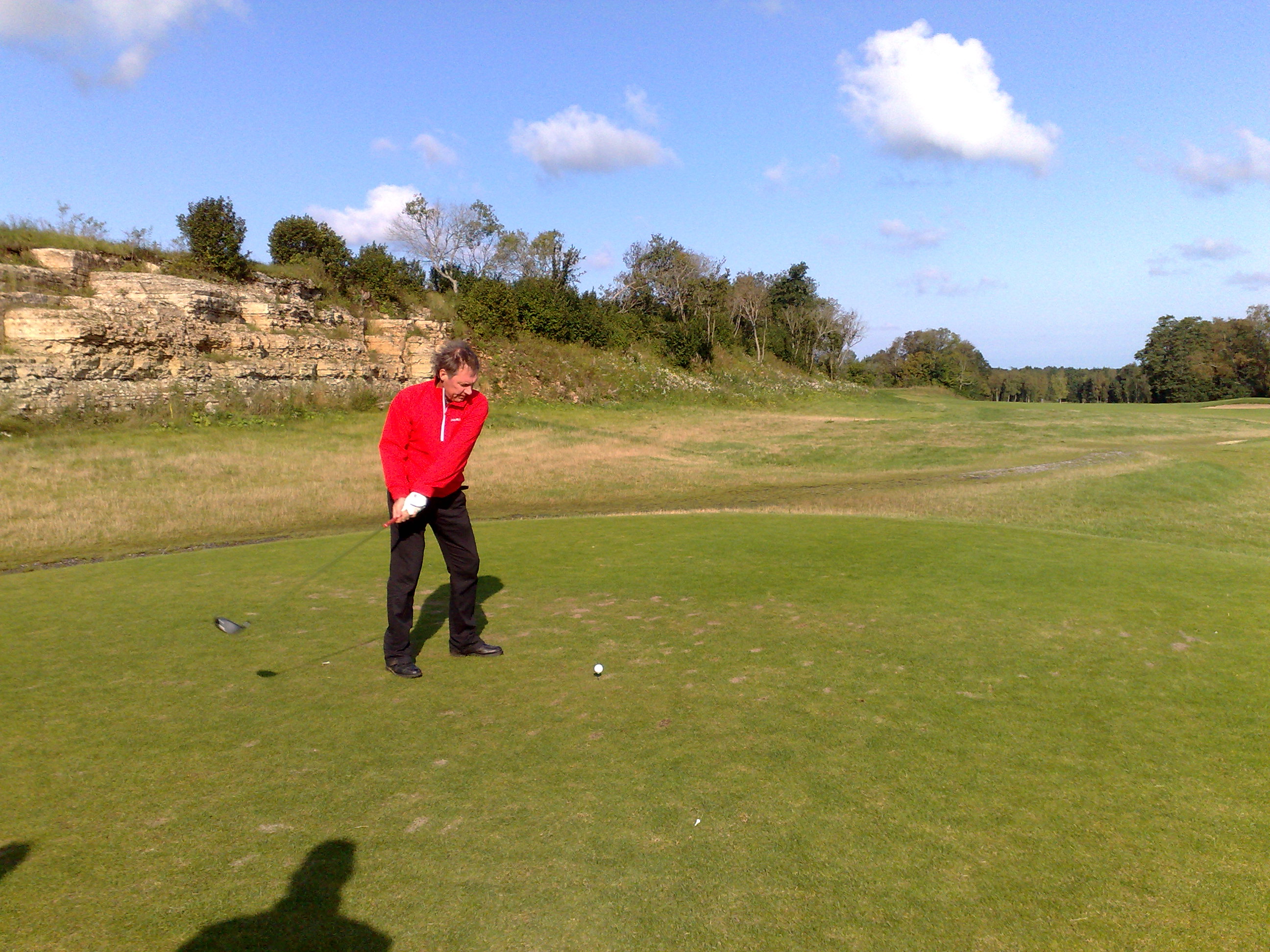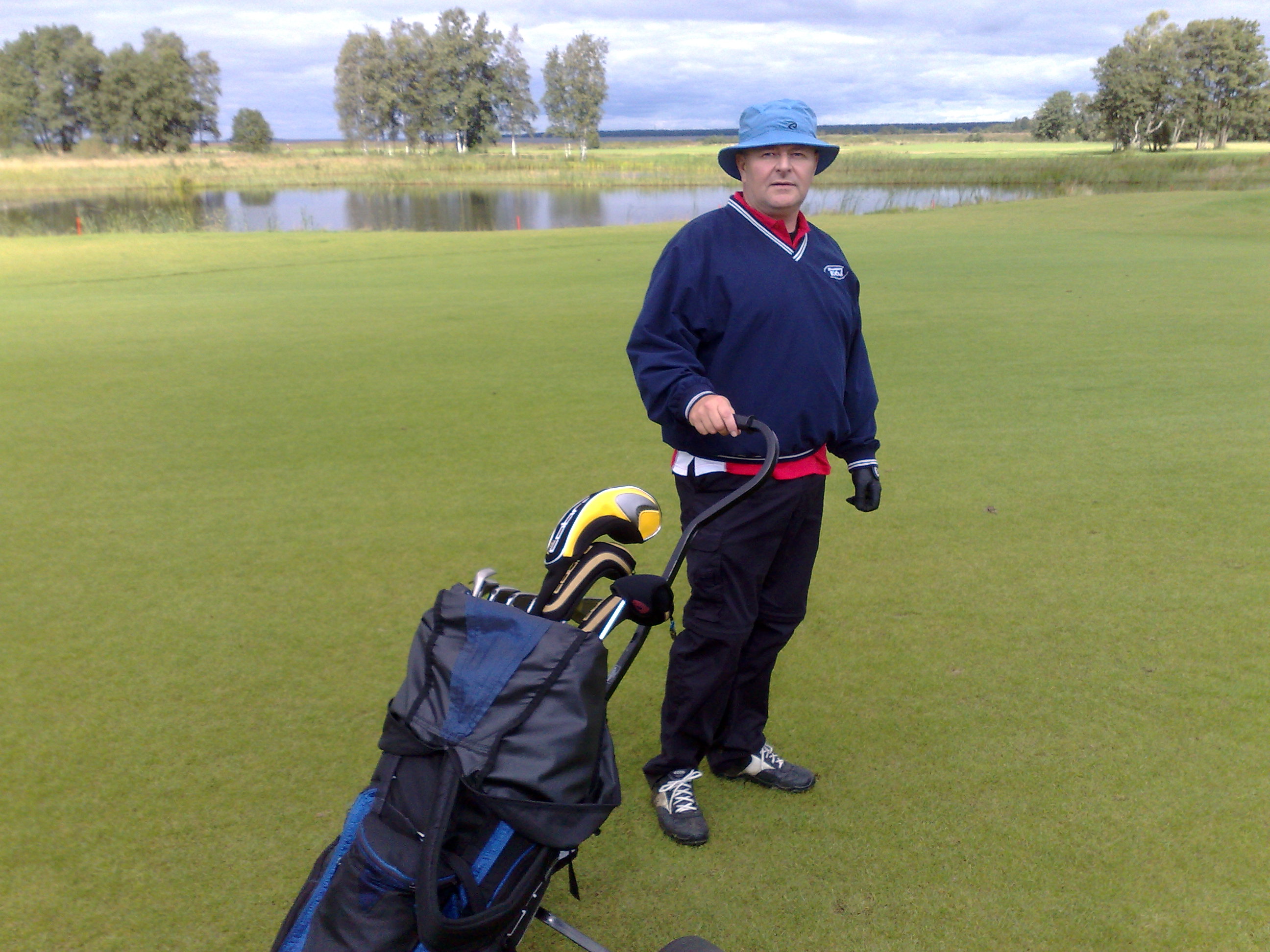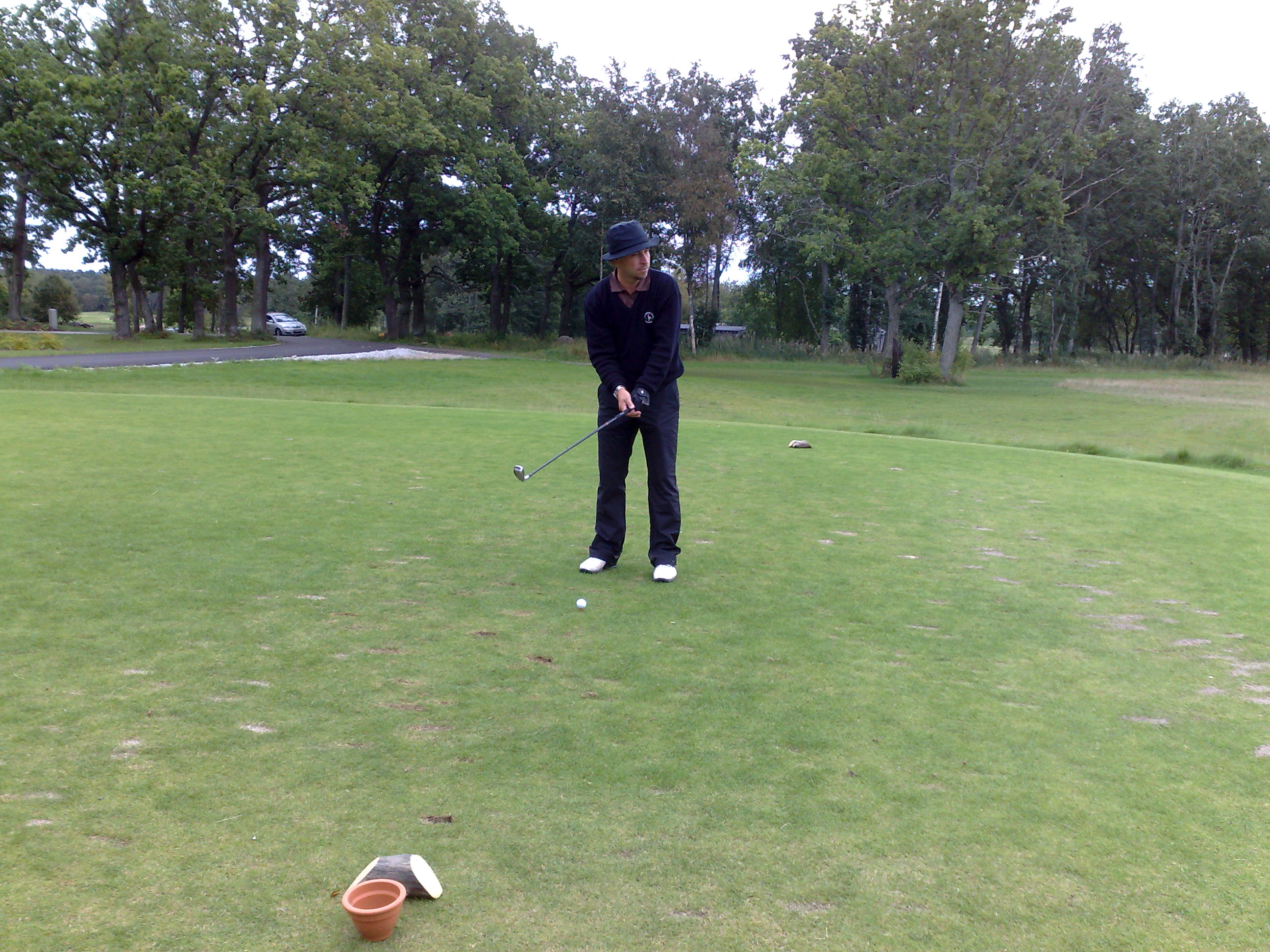 | En härlig dag på golfbanan och en flaska vatten. Kan livet vara bättre? |